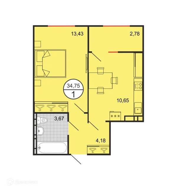 1 комн. квартира в Краснодаре в ипотеку от 31 779 руб/месяц