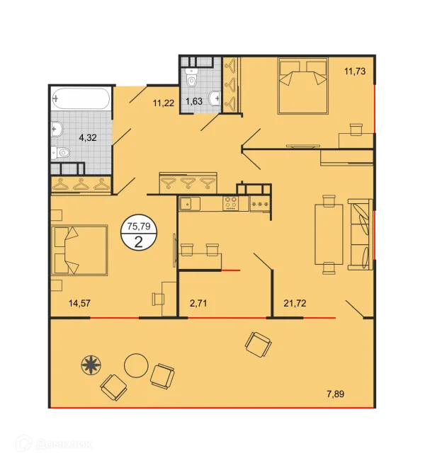 2 комн. квартира в Краснодаре в ипотеку от 56 634 руб/месяц