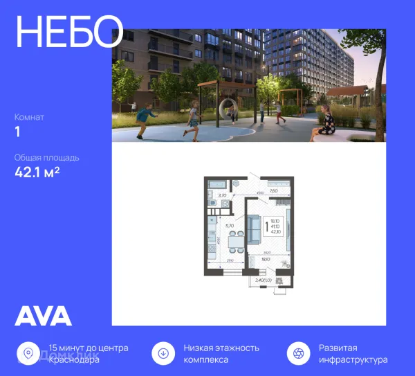 1 комн. квартира в Краснодаре в ипотеку от 68 140 руб/месяц