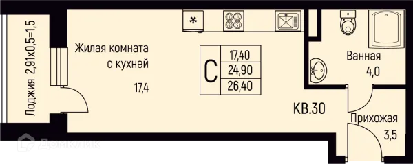 Студия квартира в Краснодаре в ипотеку от 32 937 руб/месяц