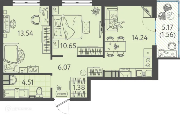 2 комн. квартира в Краснодаре в ипотеку от 59 289 руб/месяц