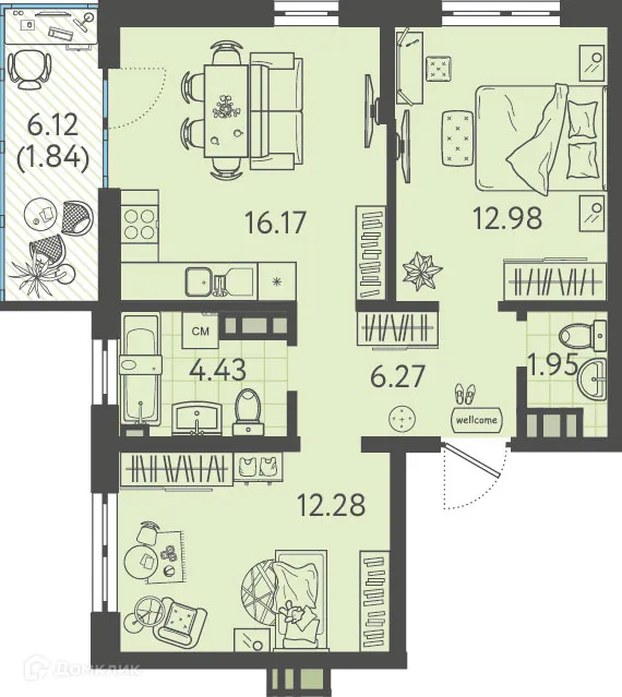 2 комн. квартира в Краснодаре в ипотеку от 61 917 руб/месяц