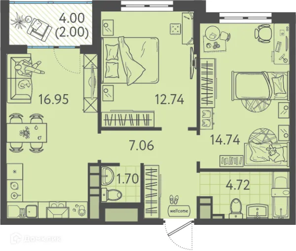 2 комн. квартира в Краснодаре в ипотеку от 60 384 руб/месяц