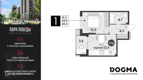 1 комн. квартира в Краснодаре в ипотеку от 39 380 руб/месяц