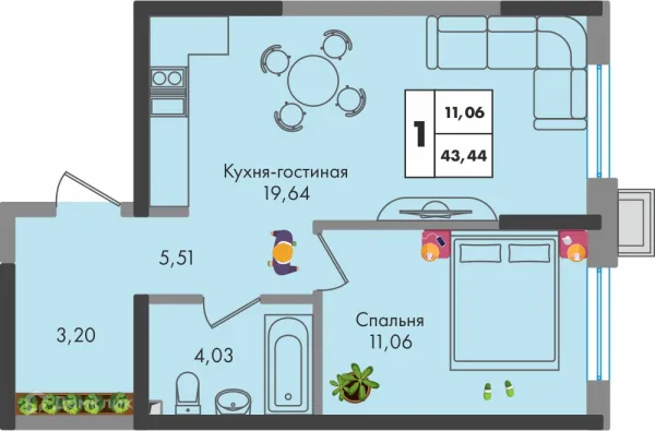 1 комн. квартира в Краснодаре в ипотеку от 52 306 руб/месяц