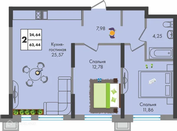 2 комн. квартира в Краснодаре в ипотеку от 65 284 руб/месяц
