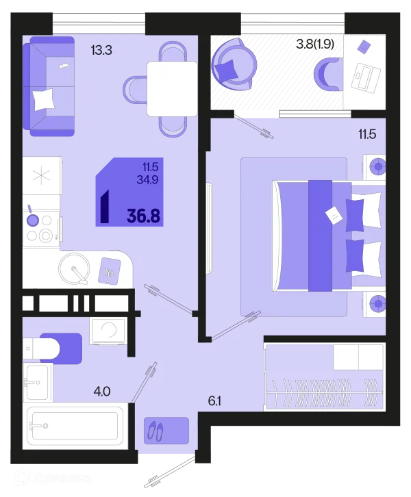 1 комн. квартира в Краснодаре в ипотеку от 38 512 руб/месяц