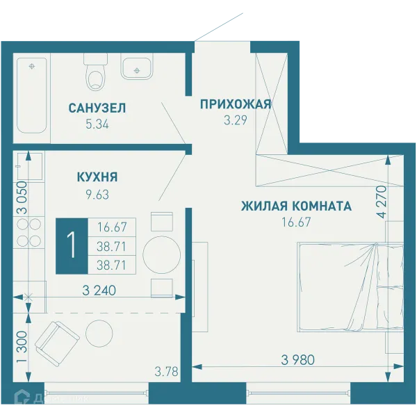 1 комн. квартира в Краснодаре в ипотеку от 49 107 руб/месяц