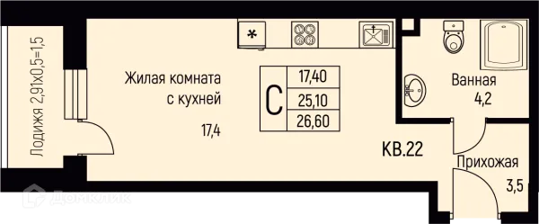 Студия квартира в Краснодаре в ипотеку от 34 819 руб/месяц