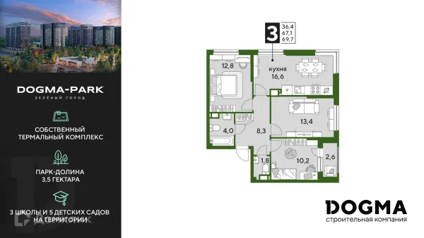 3 комн. квартира в Краснодаре в ипотеку от 87 661 руб/месяц