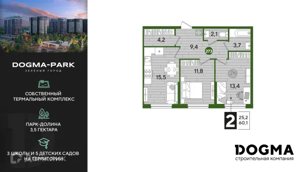 2 комн. квартира в Краснодаре в ипотеку от 52 584 руб/месяц