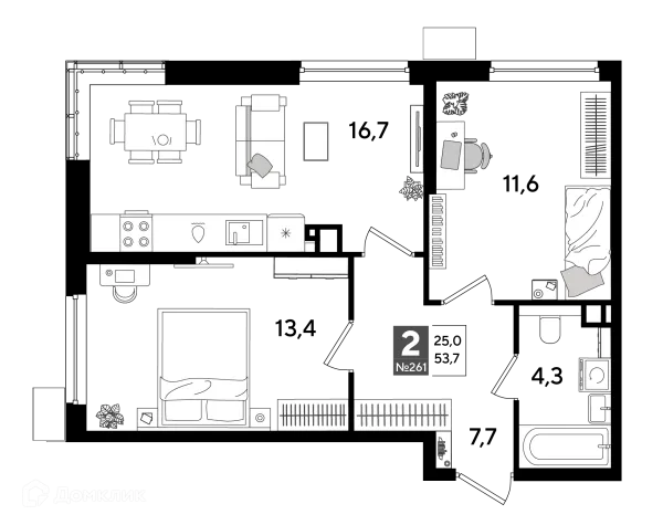2 комн. квартира в Краснодаре в ипотеку от 51 707 руб/месяц