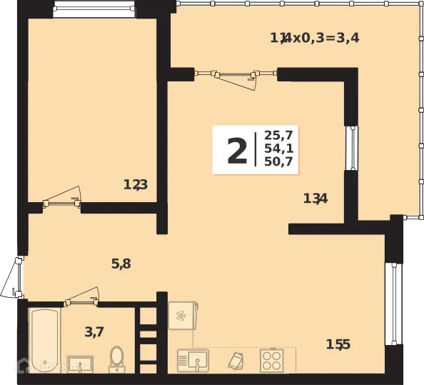 2 комн. квартира в Краснодаре в ипотеку от 51 441 руб/месяц