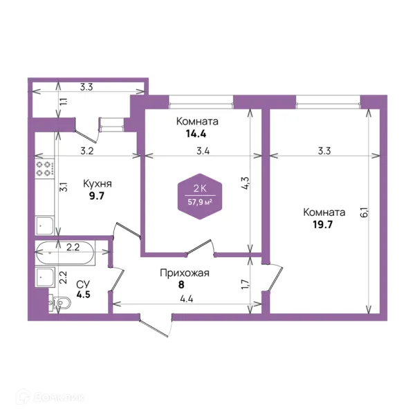 2 комн. квартира в Краснодаре в ипотеку от 56 279 руб/месяц