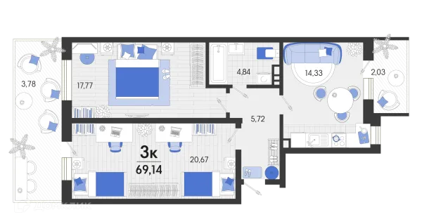 2 комн. квартира в Краснодаре в ипотеку от 69 936 руб/месяц