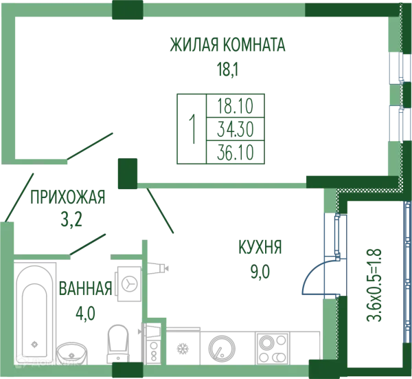 1 комн. квартира в Краснодаре в ипотеку от 55 956 руб/месяц