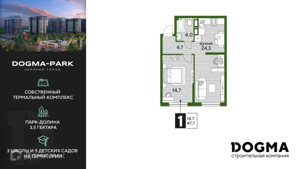 1 комн. квартира в Краснодаре в ипотеку от 42 624 руб/месяц