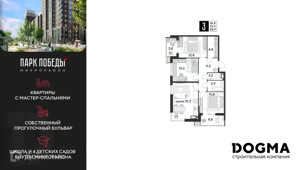 3 комн. квартира в Краснодаре в ипотеку от 86 879 руб/месяц