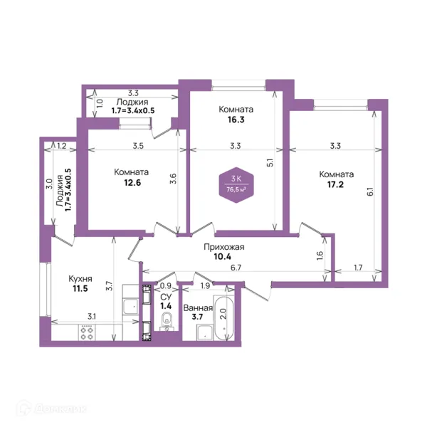 3 комн. квартира в Краснодаре в ипотеку от 86 080 руб/месяц
