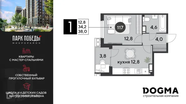 1 комн. квартира в Краснодаре в ипотеку от 42 752 руб/месяц