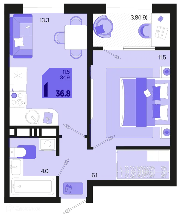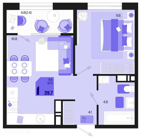 1 комн. квартира в Краснодаре в ипотеку от 42 399 руб/месяц