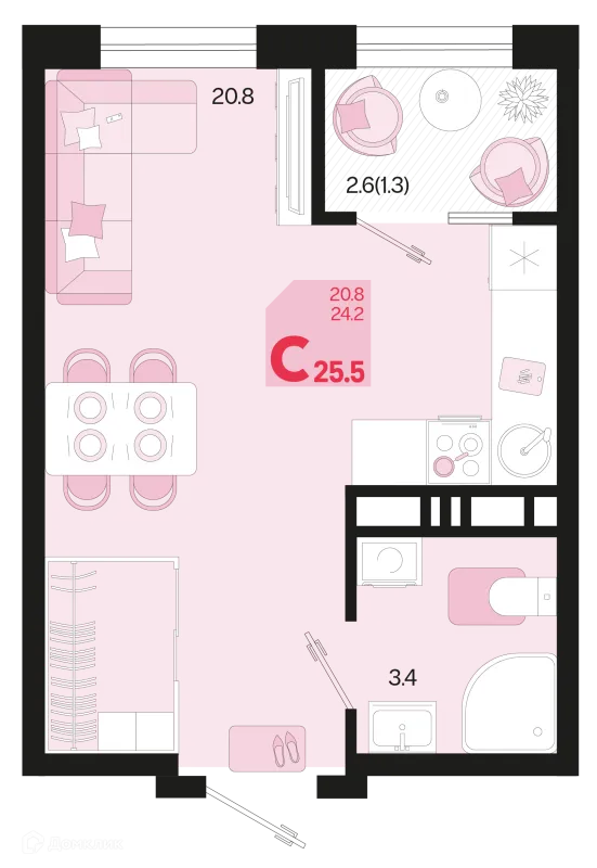 1 комн. квартира в Краснодаре в ипотеку от 51 172 руб/месяц