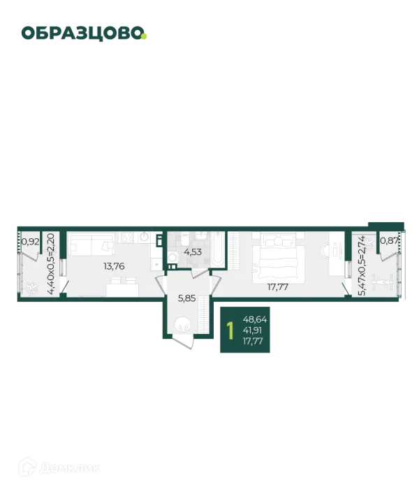 1 комн. квартира в Краснодаре в ипотеку от 49 408 руб/месяц
