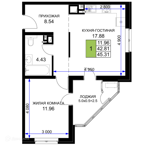 1 комн. квартира в Краснодаре в ипотеку от 80 308 руб/месяц