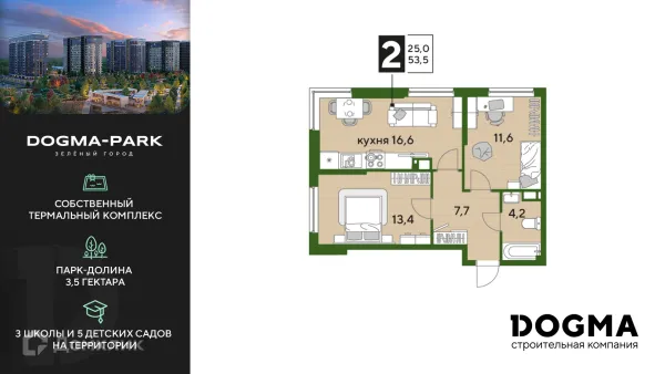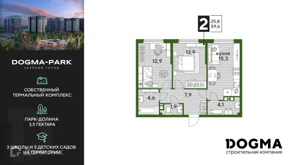 2 комн. квартира в Краснодаре в ипотеку от 53 109 руб/месяц