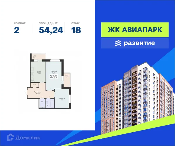 2 комн. квартира в Воронеже в ипотеку от 54 080 руб/месяц