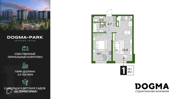 1 комн. квартира в Краснодаре в ипотеку от 45 241 руб/месяц