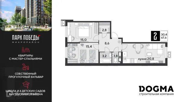 2 комн. квартира в Краснодаре в ипотеку от 68 199 руб/месяц