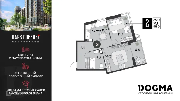 2 комн. квартира в Краснодаре в ипотеку от 51 164 руб/месяц