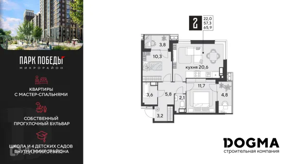 2 комн. квартира в Краснодаре в ипотеку от 65 951 руб/месяц