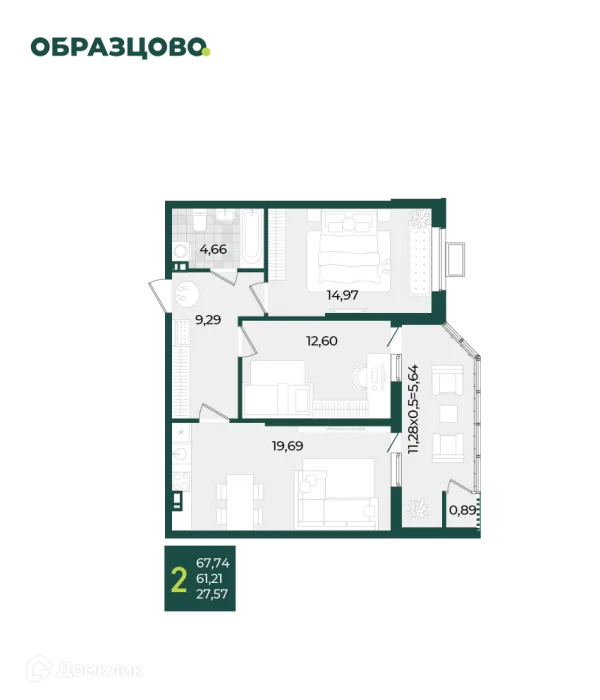 2 комн. квартира в Краснодаре в ипотеку от 63 489 руб/месяц