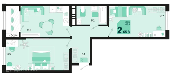 2 комн. квартира в Краснодаре в ипотеку от 67 168 руб/месяц