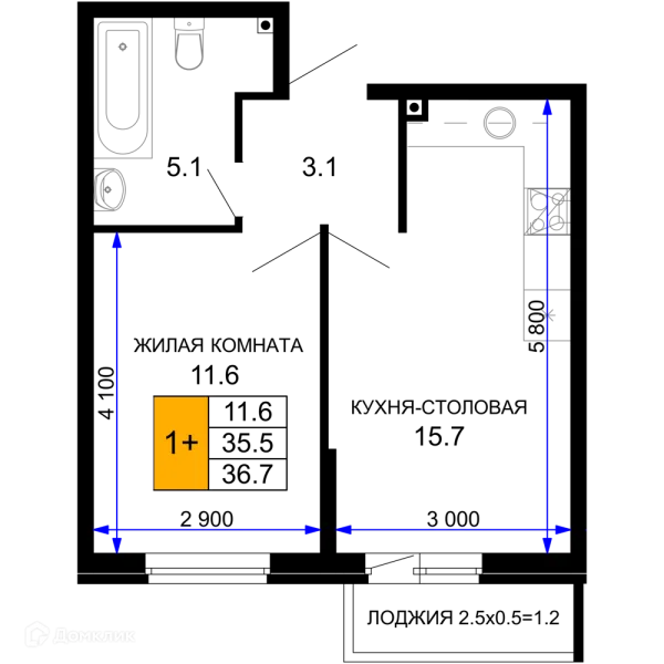 1 комн. квартира в Краснодаре в ипотеку от 53 410 руб/месяц