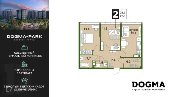 2 комн. квартира в Краснодаре в ипотеку от 64 918 руб/месяц