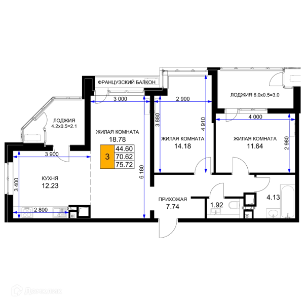 3 комн. квартира в Краснодаре в ипотеку от 75 766 руб/месяц