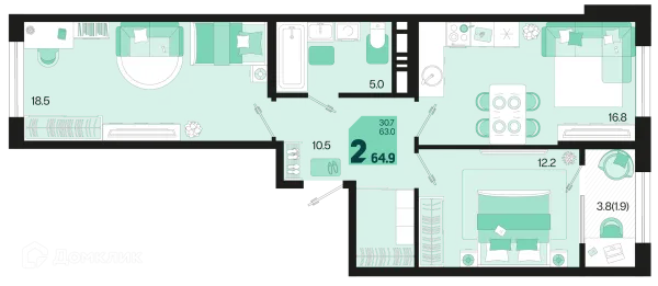 2 комн. квартира в Краснодаре в ипотеку от 64 493 руб/месяц