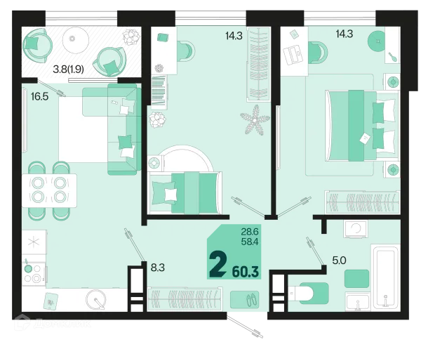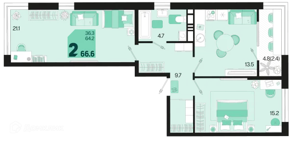 2 комн. квартира в Краснодаре в ипотеку от 66 183 руб/месяц