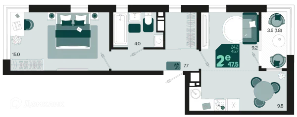 2 комн. квартира в Краснодаре в ипотеку от 47 044 руб/месяц