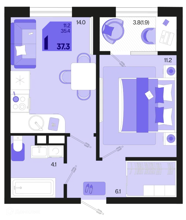1 комн. квартира в Краснодаре в ипотеку от 37 629 руб/месяц