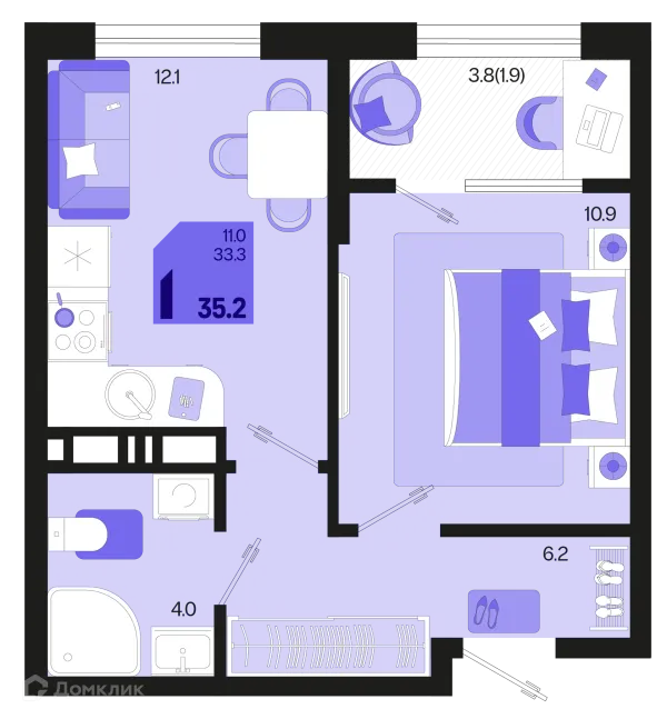 1 комн. квартира в Краснодаре в ипотеку от 38 409 руб/месяц