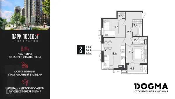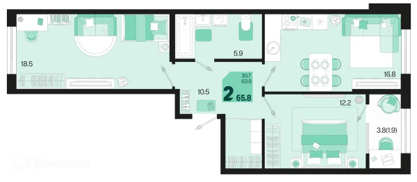 2 комн. квартира в Краснодаре в ипотеку от 63 936 руб/месяц