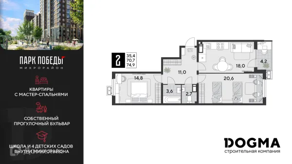2 комн. квартира в Краснодаре в ипотеку от 73 386 руб/месяц