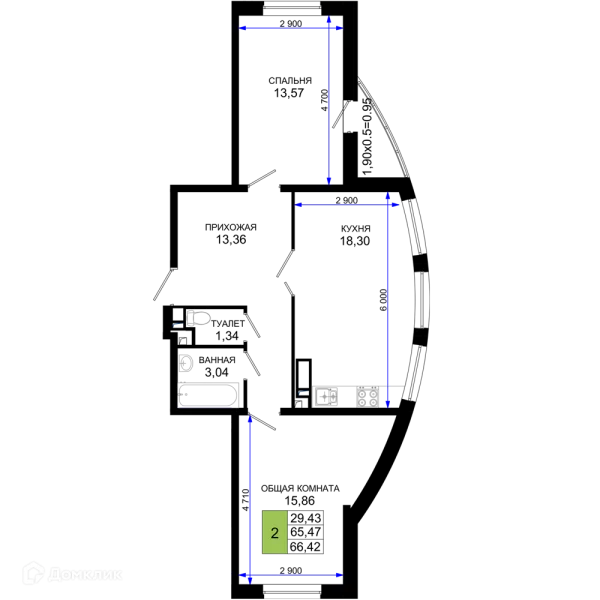 2 комн. квартира в Краснодаре в ипотеку от 67 005 руб/месяц