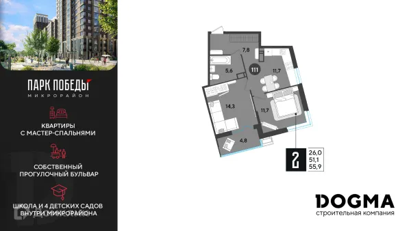 2 комн. квартира в Краснодаре в ипотеку от 56 985 руб/месяц