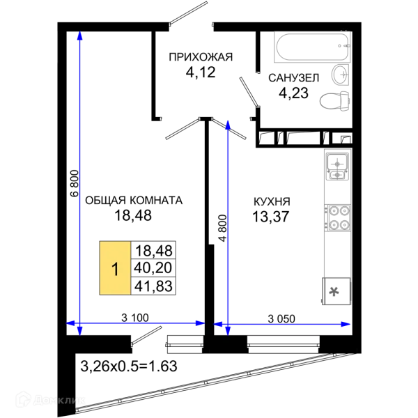 1 комн. квартира в Краснодаре в ипотеку от 40 311 руб/месяц