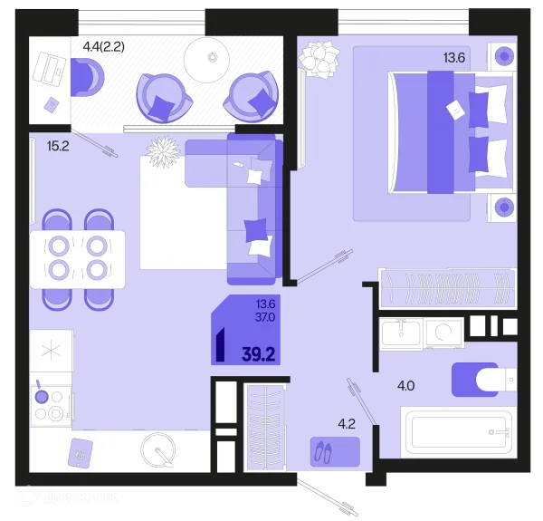 1 комн. квартира в Краснодаре в ипотеку от 36 996 руб/месяц